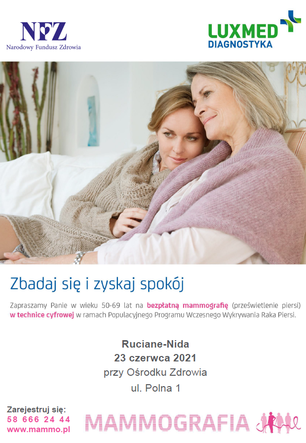 Bezpłatna mammografia: 23 czerwca 2021 roku w Rucianem-Nidzie i Orzyszu