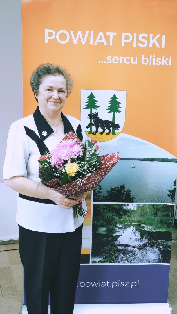 W imieniu Powiatu gratulacje na ręce laureatki złożyli Wicestarosta Piski Marek Wysocki, członek Zarządu Powiatu dr Waldemar Brenda oraz Sekretarz Powiatu Edyta Polak.