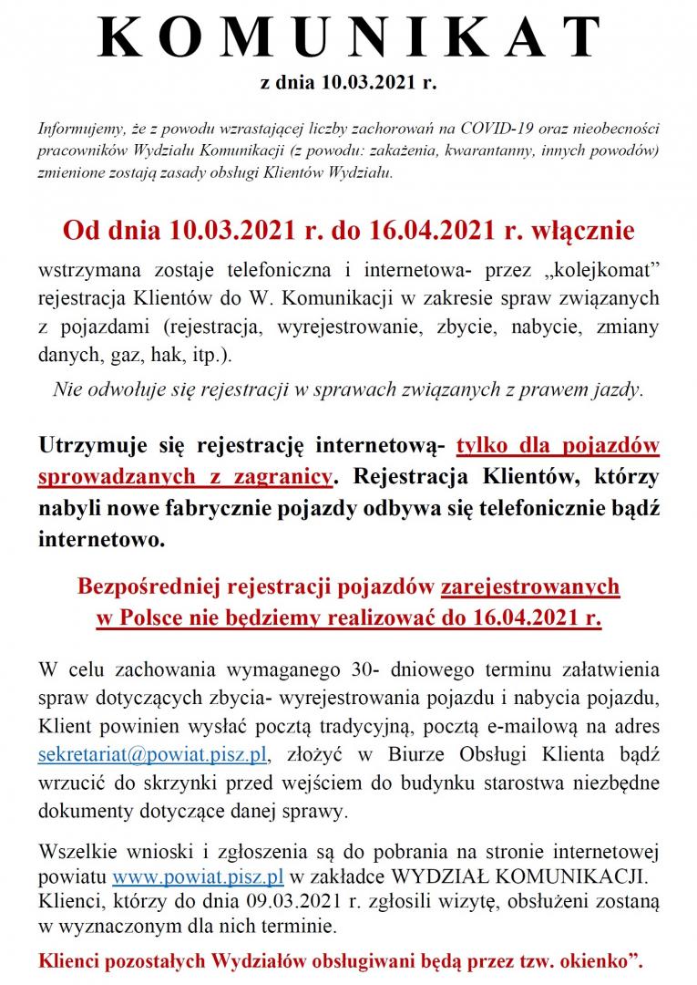 Zmienione zasady obsługi klientów Wydziału Komunikacji | Starostwo Powiatowe w Piszu