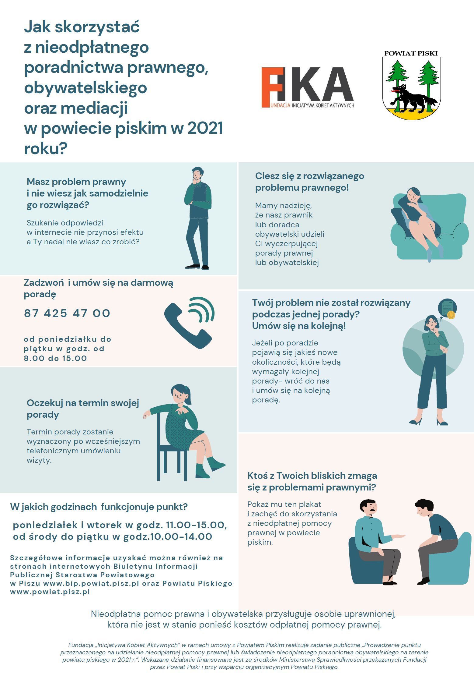 22.04.2021 Nieodpłatna pomoc prawna dla mieszkańców powiatu piskiego Treść aktualności znajduje się w załączniku. Do pobrania Plakat z informacjami dotyczącymi nieodpłatnej pomocy prawnejPobierz UdostępnijDrukujPDF